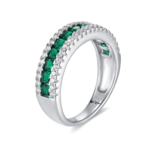 Lab-Grown Emerald - Diamond-Wing Square Emerald Streaming Light Ring