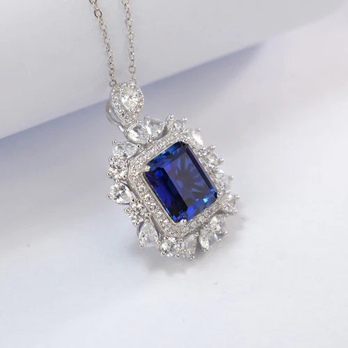 Lab-Grown Emerald - Emerald Oval Diamond Cluster Halo Pendant