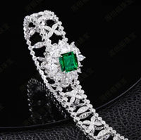 Lab-Grown Emerald - Square Emerald Diamond-Chain Soft-Wrist Bracelet